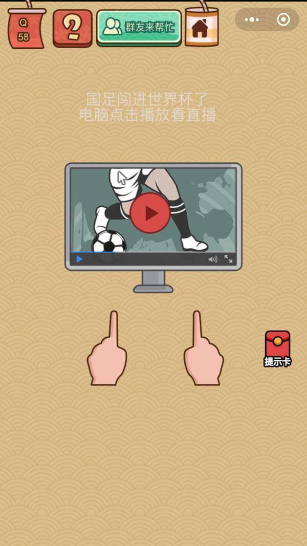 脑力大乱斗X58关:国足闯进世界杯了,电脑点击播放看直播