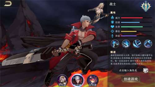 玩家进入游戏后,首先会进入游戏的职业选择界面。目前,《我守护的世界》公布了三大职业,分别是战士、刺客和法师,在后续的开发中还将加入新职业狂战。玩家在职业选择界面可以随意选择一个自己喜欢的职业,并给自己的职业创建角色名。