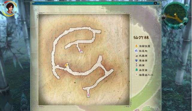 我们的姜云凡少侠到了风景如画的青荷镇,记得第一件事就是要把这里的商店都逛过来,尤其是杂货店卖的技能书(阳属性第一法术只能在此购买),按M可以查看地图。