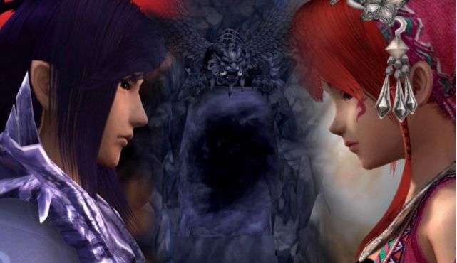一路走向山顶,发现了魔猿的老大魔魈。不要忘记山顶存档处后面有个箱子(被树挡着),里面有两个招魂幡,可以复活队友。