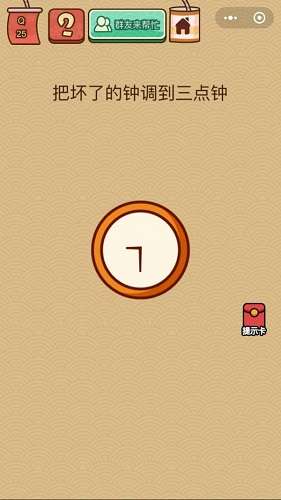 微信脑力大乱斗X第25关的题目是:把坏了的钟调到三点钟,有些玩家都卡在这关了,那么脑力大乱斗X第25关怎么过?下面小编为您带来脑力大乱斗X第25关攻略 。