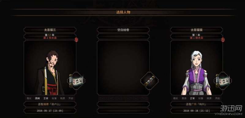 玩家可以在游戏中有三个存档,来保存自己不同的太吾经历。