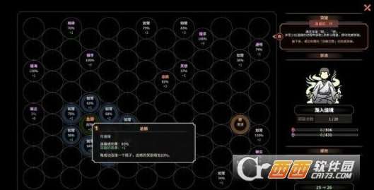 突破点上显示的数字%是突破这点的成功率,[总纲]、[循序]等特殊格会有特殊的效果,比如[总纲]的效果每成功连接一个格子,此格的奖励增加10%。
