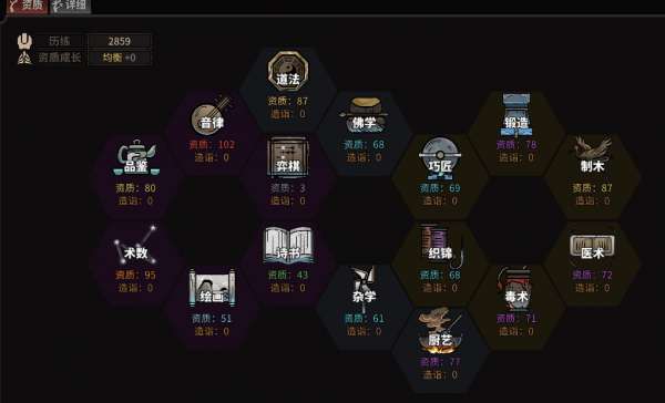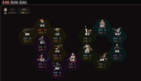 这样配点后,开始义父功法选择学其它武学然后选我不知道得内功,这样内功资质不低,刷开局就是刷战斗武功资质(剑法或刀法等,选一个),绝技和身法资质,如果所选门派有技艺要求,最好能刷个技艺资质(例如开局没选锻造,要进铸剑山庄,最好锻造刷个起码60)。