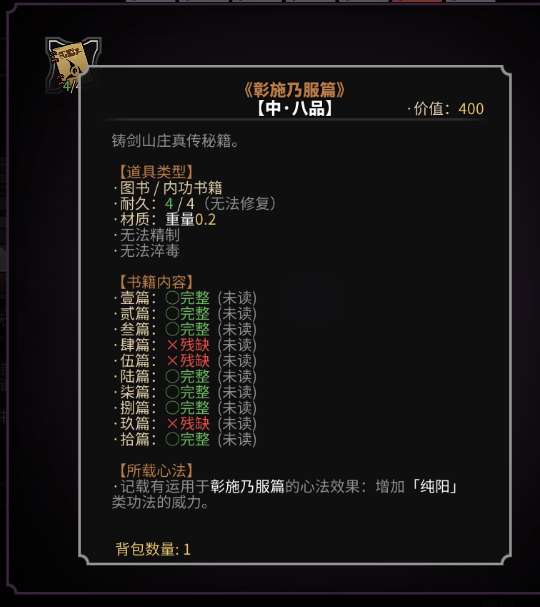 其实一般心法缺页缺的少的,缺的页数位置不那么坑的,都是可以一本心法两次全部学完的。