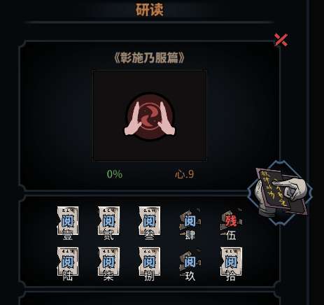 这一本心法1、2、3尽量攒悟性,4篇用维妙妙大发读完,5篇愚(1、2、3尽量只用1次悟性技能,保证4片读完后有40点可以用在5篇来愚),6、7、8同样处置,9篇维融融(妙妙都行)。这样一次读完7+2残,再读一次用维融融直接学完,不用找人换秘籍,剩威望。