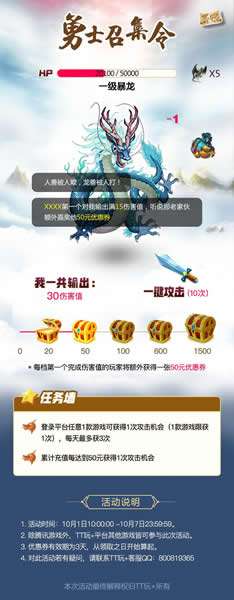 从10月1日~10月7日,TT玩加大陆的安全就靠大家来帮忙维护了!将妖怪驱赶出境,老国王一定会重重犒赏勇士们的。【勇士召集令】完整版如下