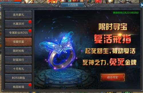 寻宝大放送,春秋战车限时翻倍放送 (15开放玄主宰神剑合成)寻宝大放送,复活戒指限时翻倍放送 (开服15的上主宰四部件,开服15-120上复活戒指,开服120上主宰四部件)