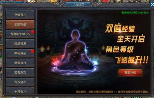 活动第一天,全服杀怪获得的经验翻倍!(使用多倍经验丹效果可叠加)