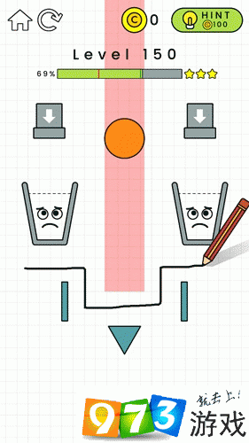 以上就是快乐玻璃杯第150关的过关攻略了 快乐玻璃杯是一款简约的解谜类游戏,游戏操作和背景音乐都很符合游戏的简约元素,游戏操作方式就是划线,玩家在划线的时候,手指处在屏幕上就会出现一支铅笔,而所画的线也就像是铅笔所画出的一般,这里就是小编前文所说的游戏操作与场景很相配的原因。就像在学生时代上课无聊在本子上乱涂乱画一般,场景中所有的物品都仿佛是乱涂乱画出的一般,不管是玻璃杯还是出水的水管,甚至是流动的水,都有一宗简笔画一样的手绘风格获得更多最新资讯 攻略 请持续关注iefans游戏专区。