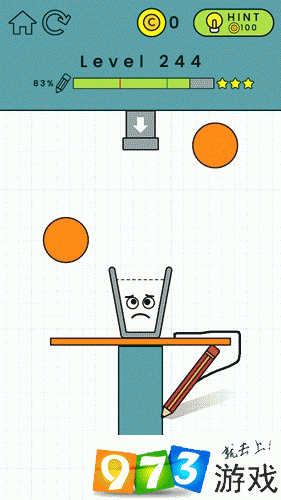 以上就是快乐玻璃杯第244关的过关攻略。快乐玻璃杯是一款简约的解谜类游戏,游戏操作和背景音乐都很符合游戏的简约元素,游戏操作方式就是划线,玩家在划线的时候,手指处在屏幕上就会出现一支铅笔,而所画的线也就像是铅笔所画出的一般,这里就是小编前文所说的游戏操作与场景很相配的原因。就像在学生时代上课无聊在本子上乱涂乱画一般,场景中所有的物品都仿佛是乱涂乱画出的一般,不管是玻璃杯还是出水的水管,甚至是流动的水,都有一宗简笔画一样的手绘风格获得更多最新资讯 攻略 请持续关注iefans游戏专区。