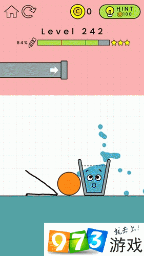 以上就是快乐玻璃杯第242关的过关攻略。快乐玻璃杯是一款简约的解谜类游戏,游戏操作和背景音乐都很符合游戏的简约元素,游戏操作方式就是划线,玩家在划线的时候,手指处在屏幕上就会出现一支铅笔,而所画的线也就像是铅笔所画出的一般,这里就是小编前文所说的游戏操作与场景很相配的原因。就像在学生时代上课无聊在本子上乱涂乱画一般,场景中所有的物品都仿佛是乱涂乱画出的一般,不管是玻璃杯还是出水的水管,甚至是流动的水,都有一宗简笔画一样的手绘风格获得更多最新资讯 攻略 请持续关注iefans游戏专区。
