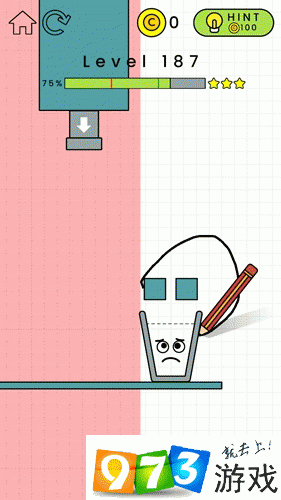以上就是快乐玻璃杯第187关的过关攻略。快乐玻璃杯是一款简约的解谜类游戏,游戏操作和背景音乐都很符合游戏的简约元素,游戏操作方式就是划线,玩家在划线的时候,手指处在屏幕上就会出现一支铅笔,而所画的线也就像是铅笔所画出的一般,这里就是小编前文所说的游戏操作与场景很相配的原因。就像在学生时代上课无聊在本子上乱涂乱画一般,场景中所有的物品都仿佛是乱涂乱画出的一般,不管是玻璃杯还是出水的水管,甚至是流动的水,都有一宗简笔画一样的手绘风格获得更多最新资讯 攻略 请持续关注iefans手游网。
