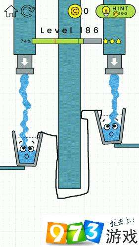 以上就是快乐玻璃杯第186关的过关攻略。快乐玻璃杯是一款简约的解谜类游戏,游戏操作和背景音乐都很符合游戏的简约元素,游戏操作方式就是划线,玩家在划线的时候,手指处在屏幕上就会出现一支铅笔,而所画的线也就像是铅笔所画出的一般,这里就是小编前文所说的游戏操作与场景很相配的原因。就像在学生时代上课无聊在本子上乱涂乱画一般,场景中所有的物品都仿佛是乱涂乱画出的一般,不管是玻璃杯还是出水的水管,甚至是流动的水,都有一宗简笔画一样的手绘风格获得更多最新资讯 攻略 请持续关注iefans手游网。