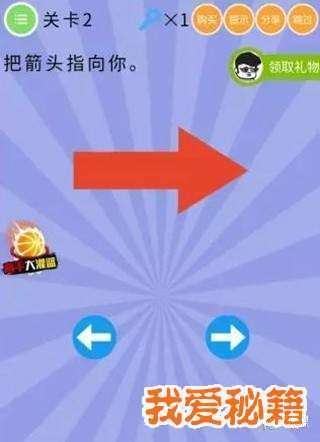 正确答案:点击下方的向左箭头,转动箭头指向题目中的你。