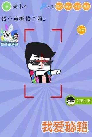 正确答案:把拍照的焦点移到题目中的小黄鸭上面去~