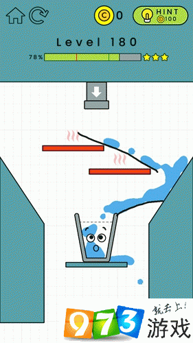 以上就是快乐玻璃杯第180关的过关攻略。快乐玻璃杯是一款简约的解谜类游戏,游戏操作和背景音乐都很符合游戏的简约元素,游戏操作方式就是划线,玩家在划线的时候,手指处在屏幕上就会出现一支铅笔,而所画的线也就像是铅笔所画出的一般,这里就是小编前文所说的游戏操作与场景很相配的原因。就像在学生时代上课无聊在本子上乱涂乱画一般,场景中所有的物品都仿佛是乱涂乱画出的一般,不管是玻璃杯还是出水的水管,甚至是流动的水,都有一宗简笔画一样的手绘风格获得更多最新资讯 攻略 请持续关注iefans手游网。