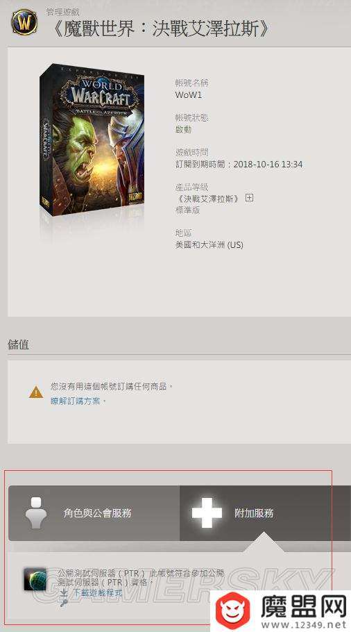 已有欧美服,拥有一个欧/美服正式付费帐号,即等于拥有PTR资格,只要开通一下,登入网页战网进入子帐号下方标籤额外服务点击PTR。