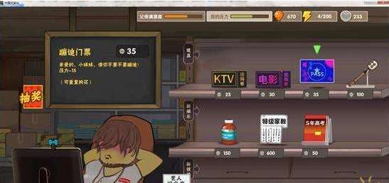 另一种方法就是在小卖部里购买解压道具,但是要记住每个回合只能购买2次道具,所以大家最好买贵一点的解压能力强一点的。