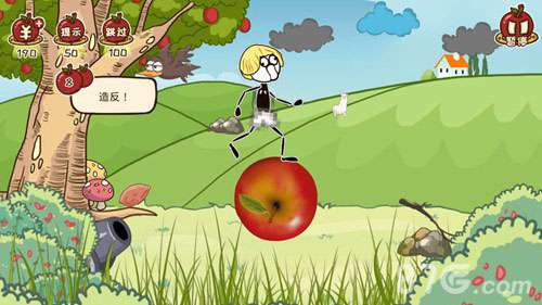 第8关,按住苹果从左往右滑动,多次滑动,苹果就会停下来了。