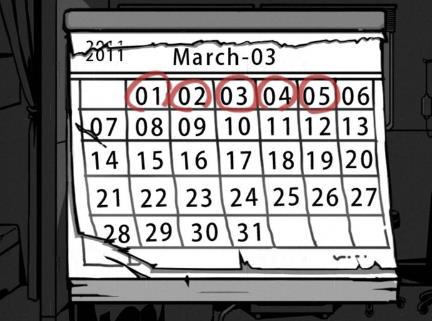 回到案发现场,我们先调查一下书桌墙上的日历: