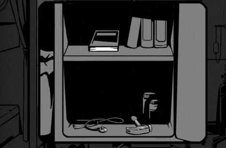 点击吊瓶架的螺丝进入交互界面,然后点击右边的箭头,再次点击螺丝......反复几次就把吊瓶架取出来啦