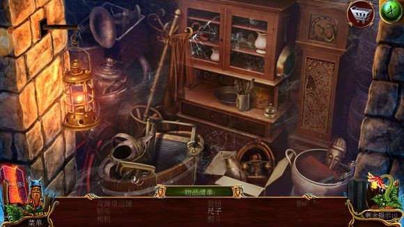 去村庄把绳子放在卡住的石头门上,另一边勾在水车上,得到马蹄铁和一只恶魔角。去湖滨把恶魔角安好,完成游戏,得到镰刀柄。