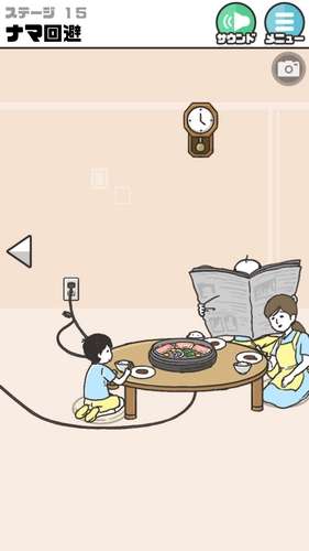 将微波炉的刻度调节到中档,然后切换到右边的场景,点击看报的人将其移开,点击他背后的插头接通电源,回到左边场景开始用餐就能顺利过关啦。