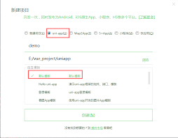 - 模板:hbuilderx提供了一些默认的项目模板,可以根据需要选择。也可以选择“不使用模板”,从零开始创建项目。