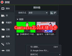 2. 应用过渡效果:camtasia提供了丰富的过渡效果。在时间轴上选中相邻的两个视频片段,然后在“效果”面板中选择合适的过渡效果,如淡入淡出等。将其应用到视频片段之间,进一步增强无缝合并的效果。