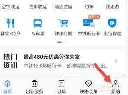 首先,打开 12306 官方 app,登录自己的账号。进入主界面后,找到“我的”选项。