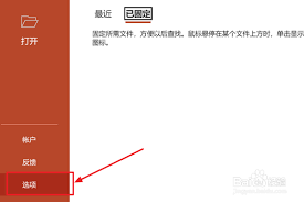 首先,打开需要设置的ppt文档。然后,点击“文件”选项卡,在弹出的菜单中选择“选项”。