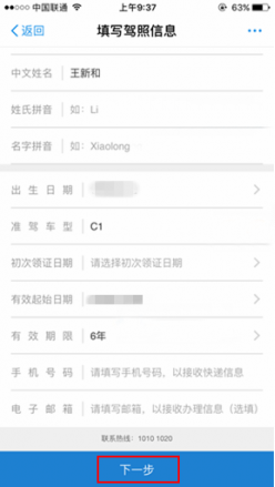 4、再接下来要求我们输入驾照信息,输入完之后再要求填写快递信息,如图所示。