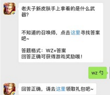老夫子新皮肤手上拿着的是什么武器?这是王者荣耀4月26日每日一题最新题目,那么接下来给大家带来4月26日每日一题的答案,希望可以帮助到玩家,小伙伴们快来看看吧!