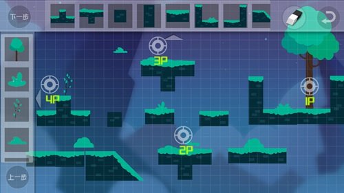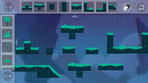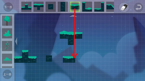 选择好背景后,我们就可以开始设计地图了,按住屏幕上方的各种方块来搭建地图的安全平台。