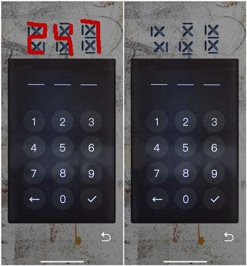 6、找到墙上的字母表,将刚刚记下来的字母一一对应每个字母右下角的数字,得到一组3位数的密码。