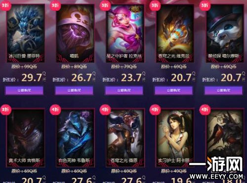 2、抽取了幸运资格的召唤师,可以以折扣购买页面道具。页面会展示不同的道具及折扣,但是每一种折扣的所有道具,仅限购买1次;