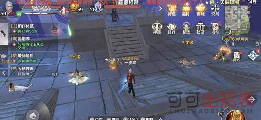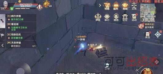 在如图所示的四个打坐者中间会有个光圈,在这个地方打坐就会触发任务了,同样奖励飞行器碎片一个;