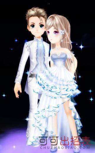 女生蛋糕裙的边缘选择了蓝色,提亮了整体套装的色调,而且与上半身的蓝紫色同属冷色系。上身的抹胸设计,显得皮肤更加白皙,尽情展现你优雅的天鹅颈吧!