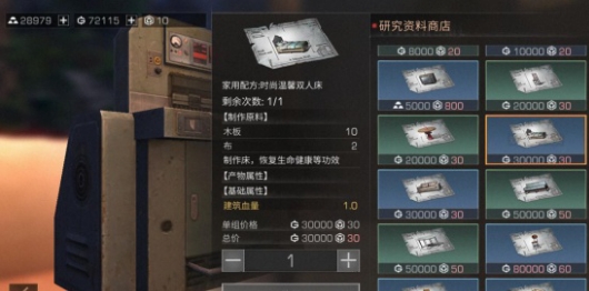 目前唯一不用氪金就可以获得的双人床,不但样式好看,而且回复耐久值也是当前最高的50点,是从配方制作台通过研究点数和新币换取的,回复能力也是非常强的,平民同居必备的小床。