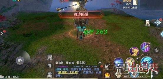 (流沙陷阱)梵天对指定区域释放流沙攻击,但是大家要注意!虽然我们能很轻易的躲过流沙陷阱的攻击,但是这并没有结束!而是在流沙陷阱释放完后,魔岩巨人会中流沙中出现,帮助梵天战斗!
