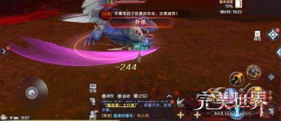 (黑暗之翼)天魔飞向空中,连续煽动翅膀,每煽动一下,将会造成大范围群体伤害!并且附带击飞效果!辅助人员注意群体治疗的技能释放!