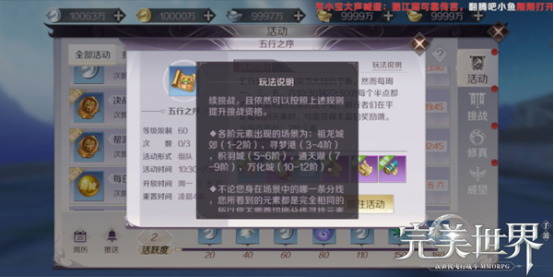1、五行之序活动在每周一、三、五、六10:30-22:30的每个半点开启。