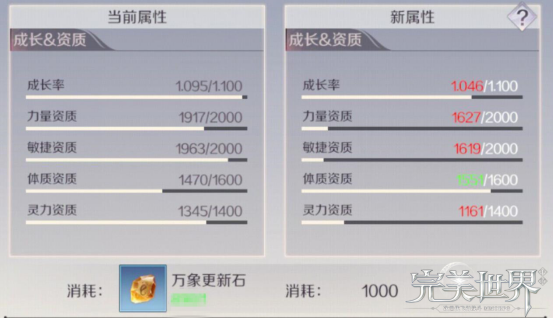 当我们感觉精灵属性不好,我们可以试着用【万象更新石】去洗炼,更换我们需要的属性资质。