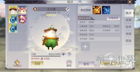 而在选择精灵方面,我们当然是优先选择基本属性等级越高的精灵为主,而后在考虑其它的属性,因为基本属性等级越高的精灵它的成长和资质也就越好!