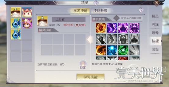精灵技能是精灵的被动技能,可以通过消耗技能书学习最多八个不同的被动技能,同样也能消耗相同技能的技能书进行升级,要注意在学习精灵技能时,要根据精灵类型来学习被动技能,例如物理攻击型精灵自然而然是选择增加力量和输出能力的被动技能!