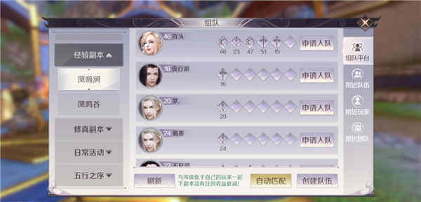 对于新手来说,最重要的当然就是提升人物的等级,因为只有等级的提升,其整体的技能属性以及战斗能力也会有着很明显的提升,同时也会开启一些比较有趣的玩法和更加具有挑战性的副本。因此新手玩家首先得选择就是凤啼间和凤鸣谷这两个副本,这也是属于经验副本,组队之后相对来说还是很容易就能够完成的。