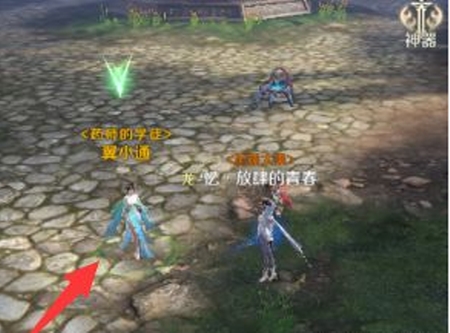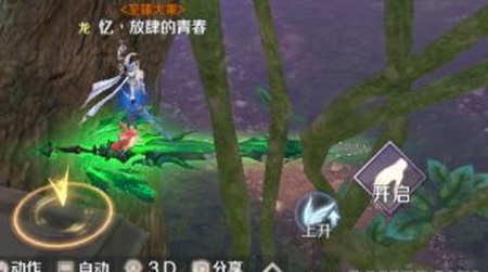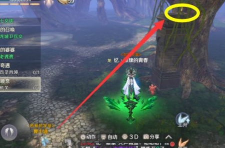 飞起来以后,会看到在NPC的旁边不远处有一个柱子,柱子上飞高一些就能看到一个小光圈