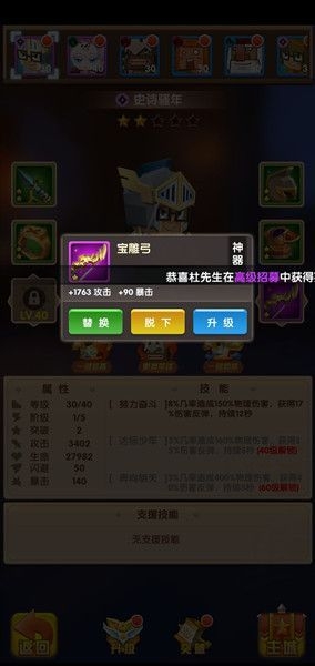 在这个里面最开始获取的武器一般会是弓,但是弓也是有一个品质限制的,如果再往下肝的话会出现一个橙色的弓,如果玩家是想要一直往下走的话,最好的选择就是选择紫色品质的,没有就通过橙色品质的去进行一个合成兑换也可以的。
