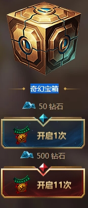 玩家可以通过活动页面购买钻石,用来开启奇幻宝箱,在奇幻宝箱中有许多限定皮肤和永久英雄活动,开启之后还会获得积分,积分满1000分可以免费活动KDA阿狸的至臻皮肤哦。